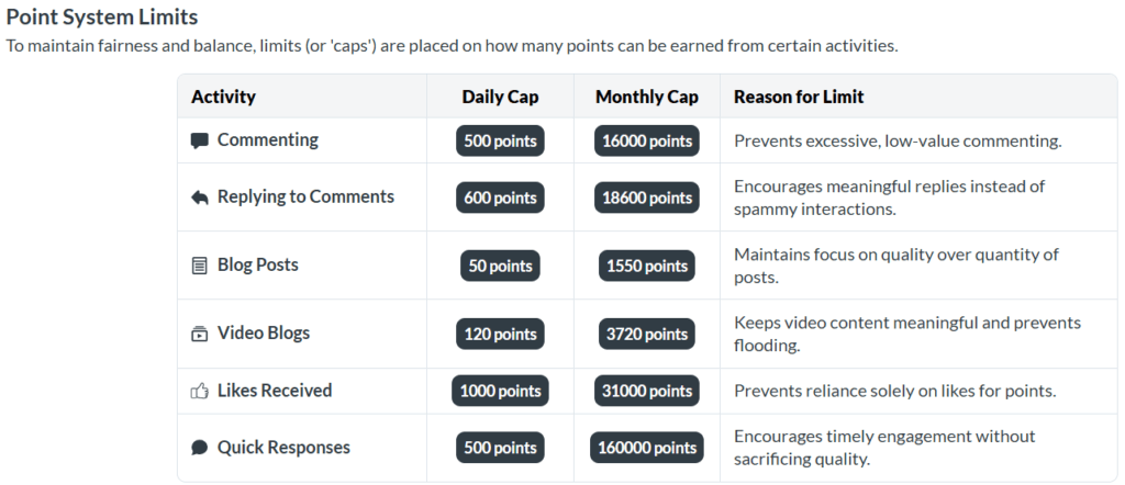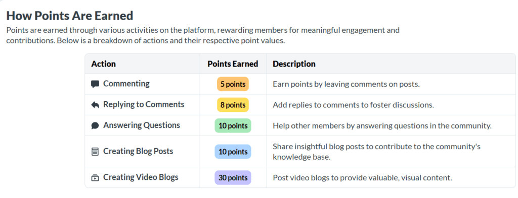 Wealthy Affiliate has created a points-based system that allows members to earn while they learn. You earn through engagement with the community. Whether that be likes, comments, creating blog or video blog posts, or answering questions from other members. Overall the more you engage, the more opportunity to earn. But be careful not to spam, or create low quality comments, you may find yourself in trouble